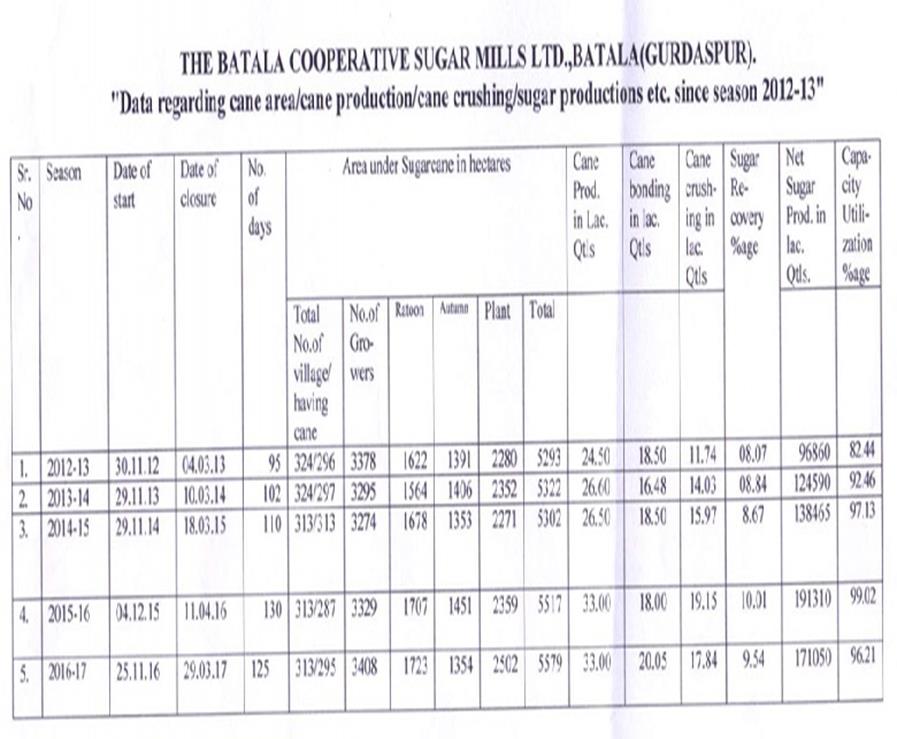 The Batala Co-Operative Sugar Mills Ltd., Batala G.T.Road Batala to Gurdaspur, Tehsil Batala, District Gurdaspur, PIN-143505. Punjab, India |
