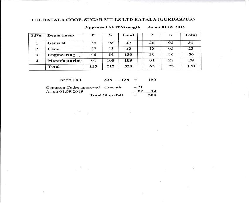 The Batala Co-Operative Sugar Mills Ltd., Batala G.T.Road Batala to Gurdaspur, Tehsil Batala, District Gurdaspur, PIN-143505. Punjab, India |